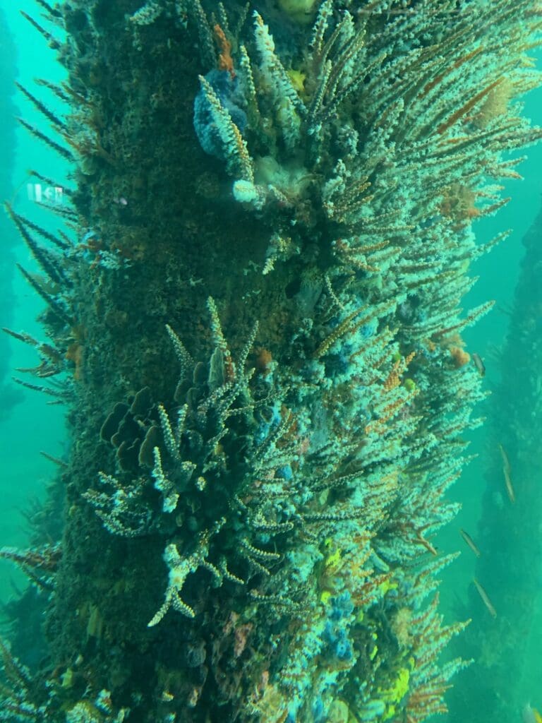 After Bunbury we went to Busselton Jetty. Whilst we were waiting for our train Mia and I played at the big park that had a huge boat like a pirate ship. The Busselton Jetty was so long that we rode the little train to the Underwater Observatory at the end of the jetty. In the Underwater Observatory we saw lots and lots of fish. You could see the old pylons from the jetty that were left after a fire on the jetty years ago. On the pylons there was lots of plants and coral growing. When we were downstairs we saw an octopus sitting in the top corner of one of the windows. I really enjoyed Busselton Jetty.